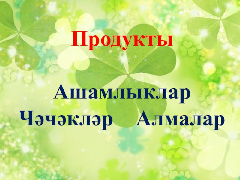 Слайд 5Продукты Ашамлыклар Чәчәкләр Алмалар