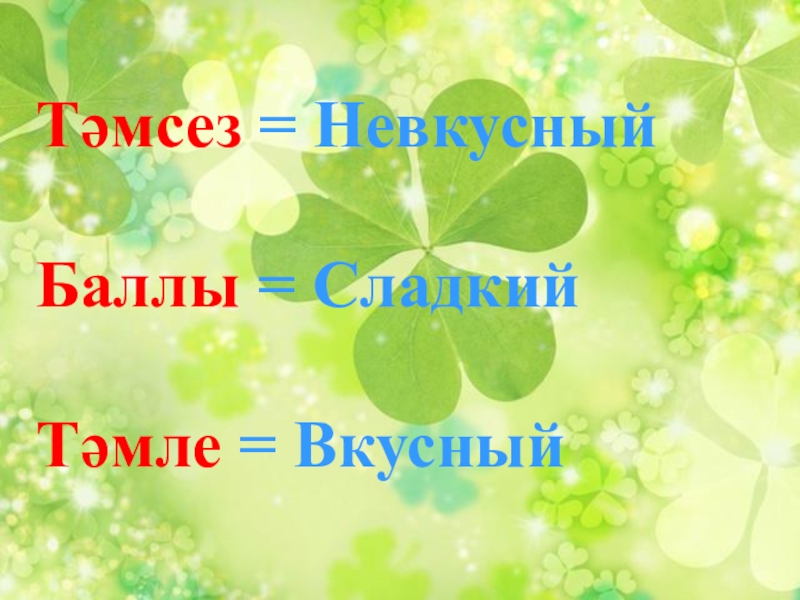 Слайд 20 Тәмсез = Невкусный Баллы = Сладкий Тәмле = Вкусный