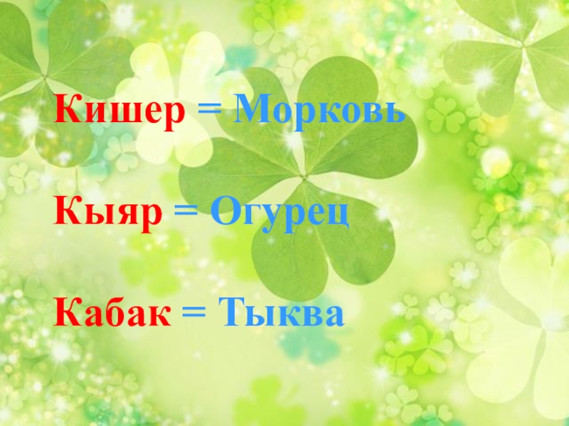 Слайд 14Кишер = Морковь Кыяр = Огурец Кабак = Тыква