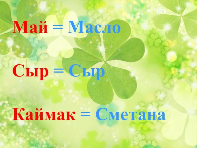 Слайд 8 Май = Масло Сыр = Сыр Каймак = Сметана