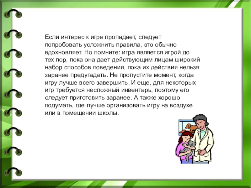 Слайд 20Если интерес к игре пропадает, следует попробовать усложнить правила, это обычно