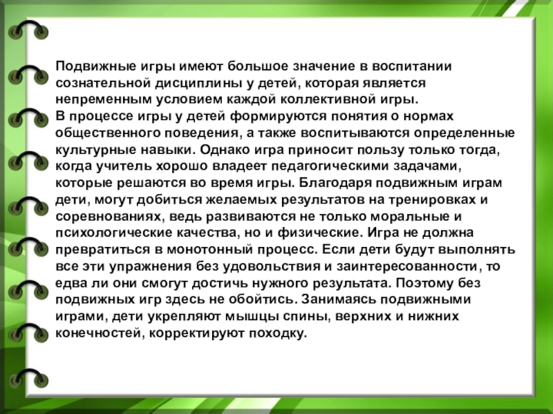 Слайд 18Подвижные игры имеют большое значение в воспитании сознательной дисциплины у детей,