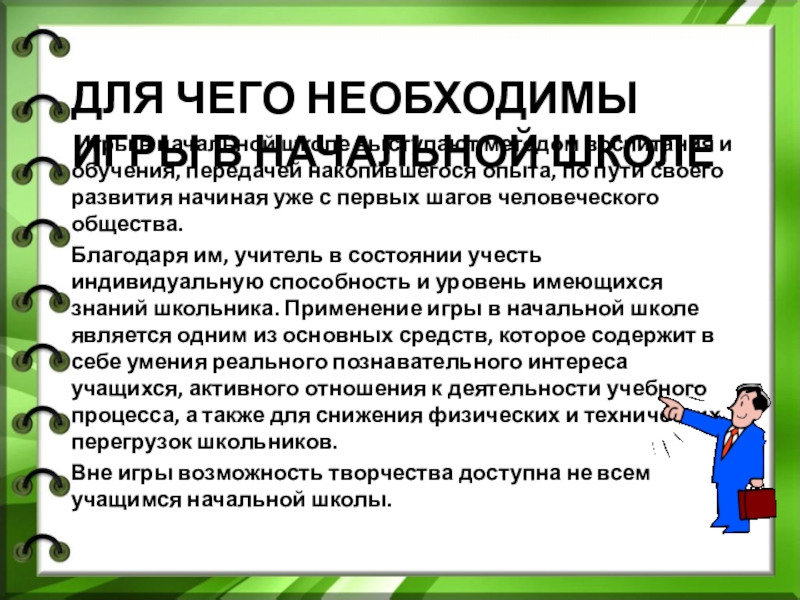 Слайд 3ДЛЯ ЧЕГО НЕОБХОДИМЫ ИГРЫ В НАЧАЛЬНОЙ ШКОЛЕ