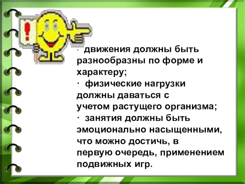 Слайд 9· движения должны быть разнообразны по форме и характеру;