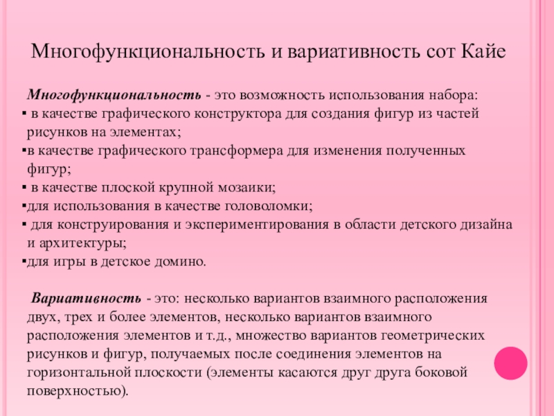 Многофункциональность и вариативность сот Кайе