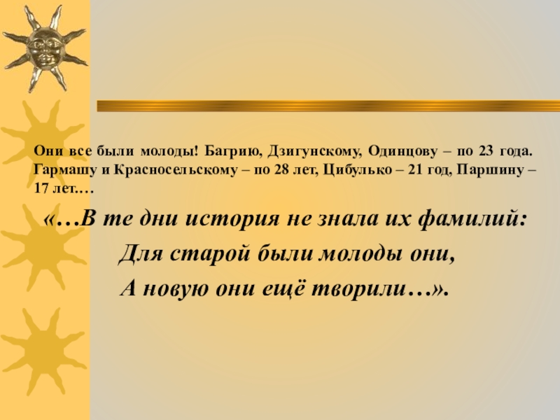 Они все были молоды! Багрию, Дзигунскому, Одинцову – по 23