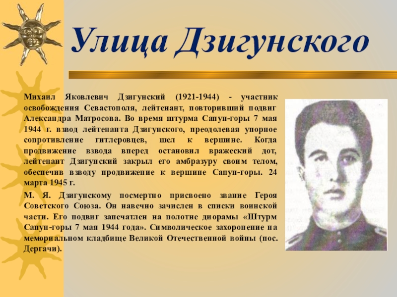 Михаил Яковлевич Дзигунский (1921-1944) - участник освобождения Севастополя,