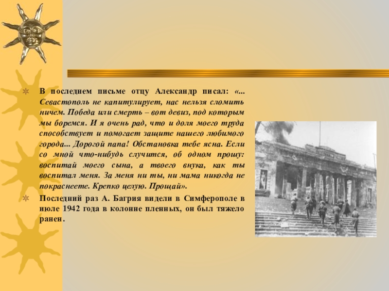 Слайд 18В последнем письме отцу Александр писал: «...Севастополь не капитулирует, нас нельзя