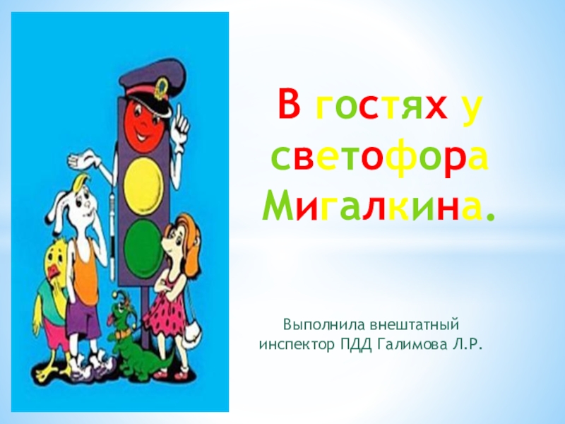 Выполнила внештатный инспектор ПДД Галимова Л.Р. В гостях у светофора Мигалкина.