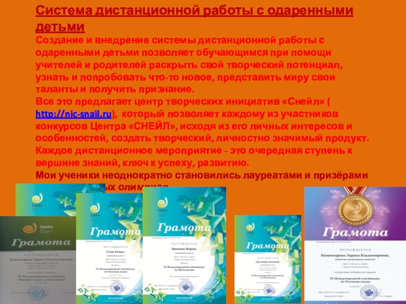 Мои ученики неоднократно становились лауреатами и призёрами дистанционных олимпиад.