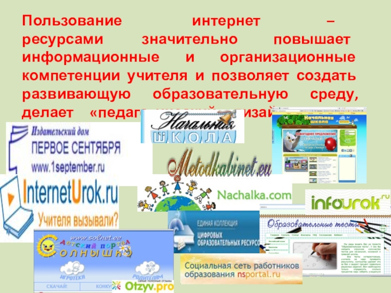 Слайд 7Пользование интернет – ресурсами значительно повышает информационные и организационные компетенции учителя
