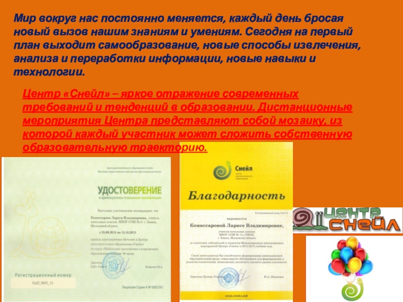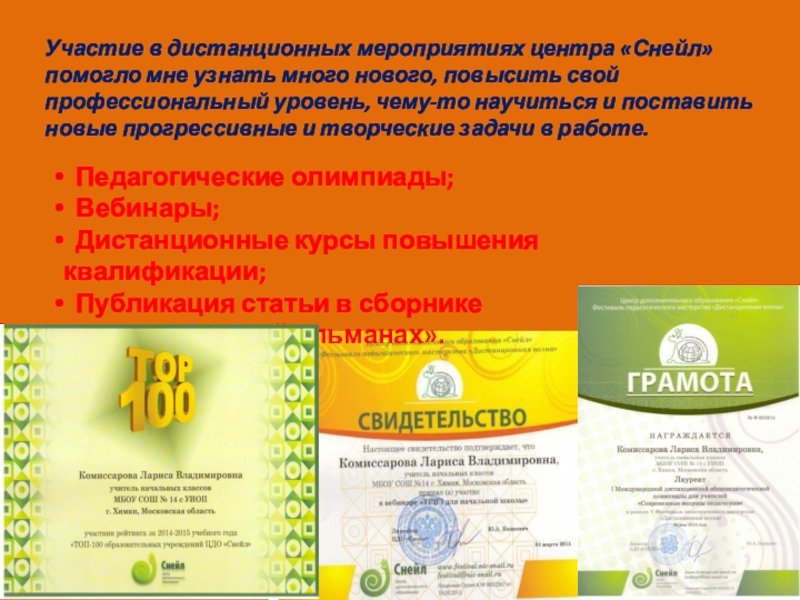 Слайд 9Участие в дистанционных мероприятиях центра «Снейл» помогло мне узнать много нового,