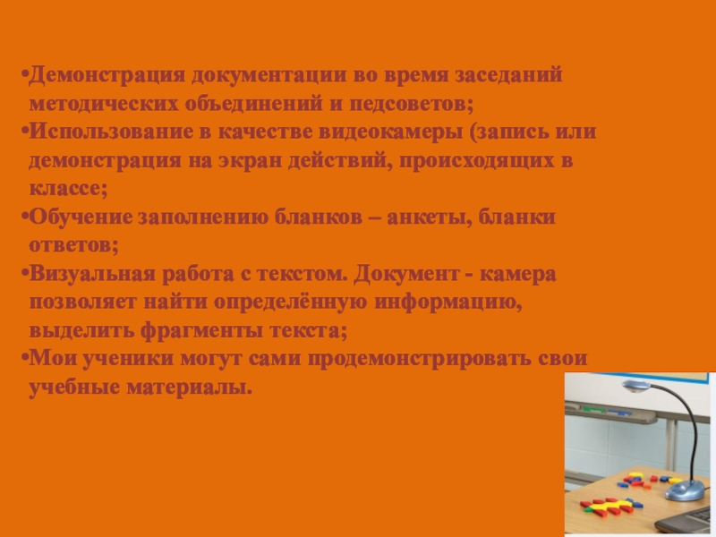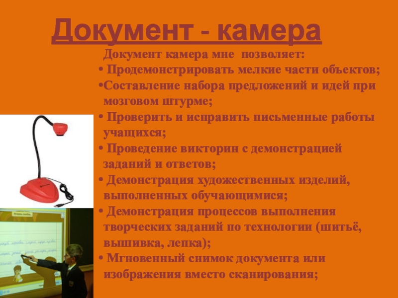 • возможность учителя продемонстрировать любые документы, фотоматериалы;