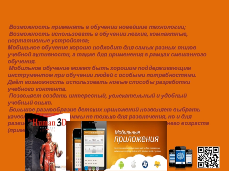 Возможность использовать в обучении легкие, компактные, портативные устройства;