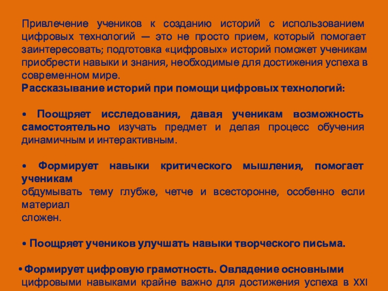 не просто прием, который помогает заинтересовать; подготовка «цифровых» историй поможет ученикам приобрести навыки и знания, необходимые для достижения успеха в современном мире.