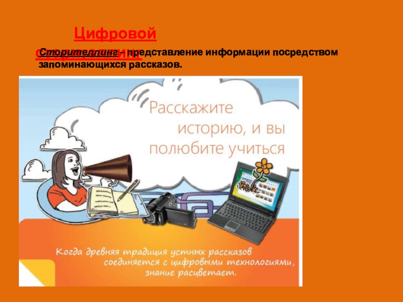 Слайд 27Привлечение учеников к созданию историй с использованием цифровых технологий — это
