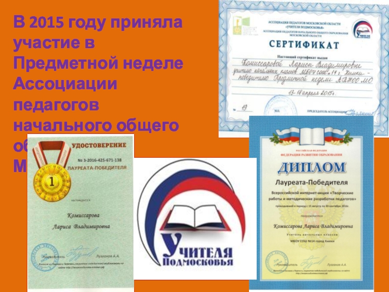 Слайд 6В 2015 году приняла участие в Предметной неделе Ассоциации педагогов начального
