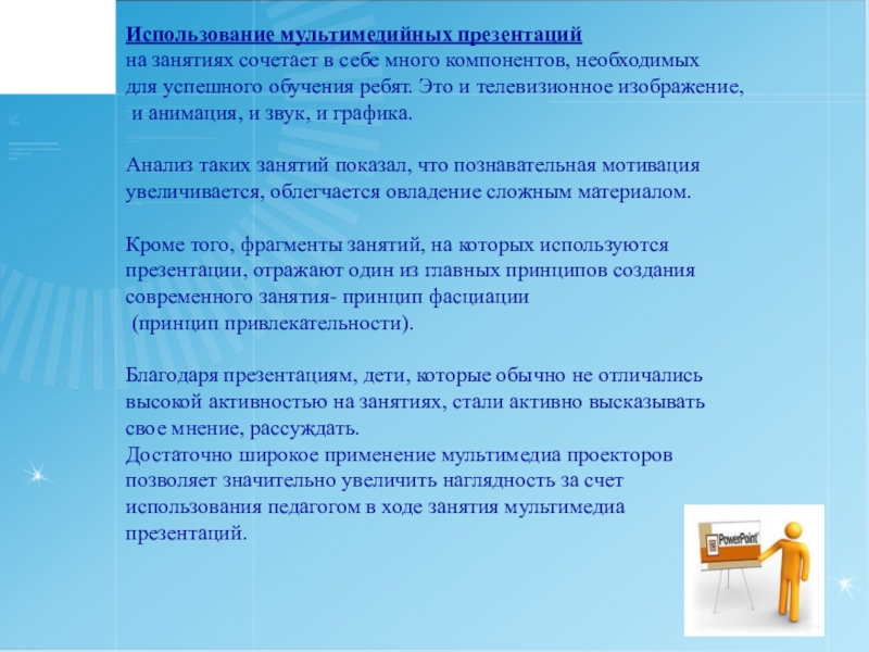 использования педагогом в ходе занятия мультимедиа