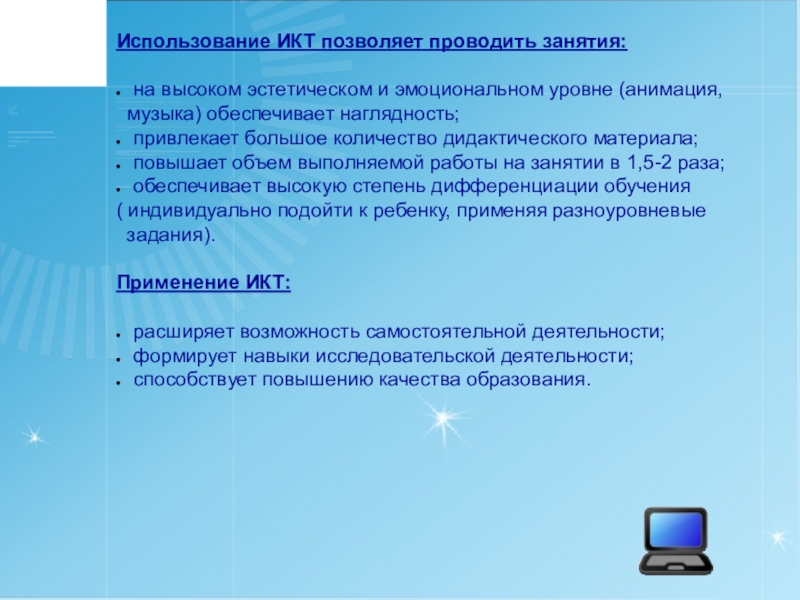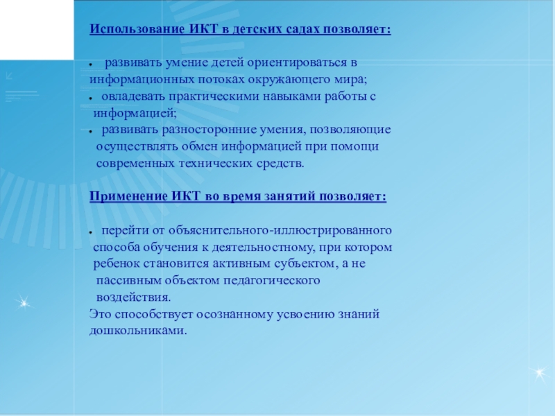 Использование ИКТ в детских садах позволяет: