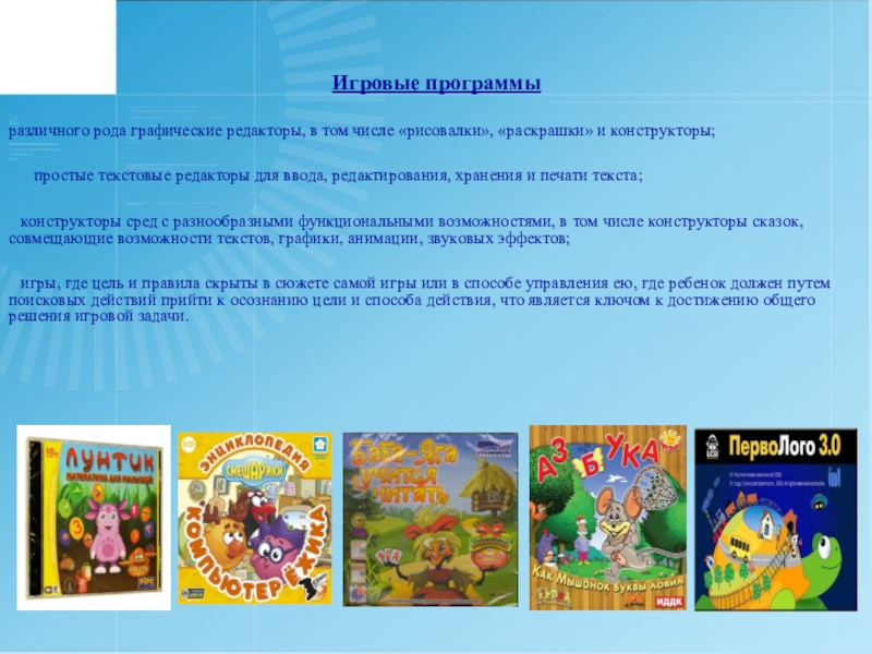 Слайд 9Игровые программы