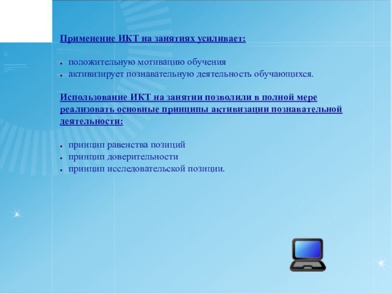 Применение ИКТ на занятиях усиливает: