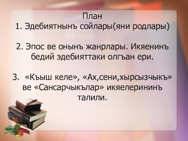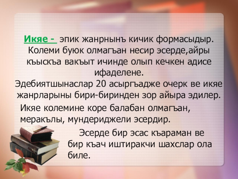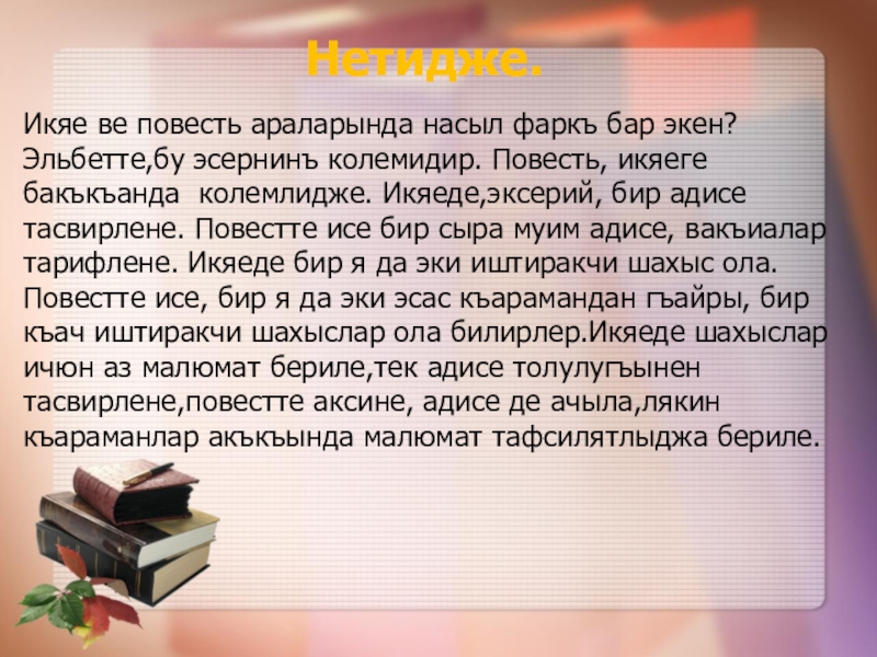 2. Икяе- сюжетнинъ хусусиетлери сырасында конфликтны къайд этмек