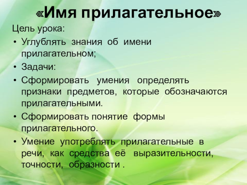 Углублять знания об имени прилагательном;