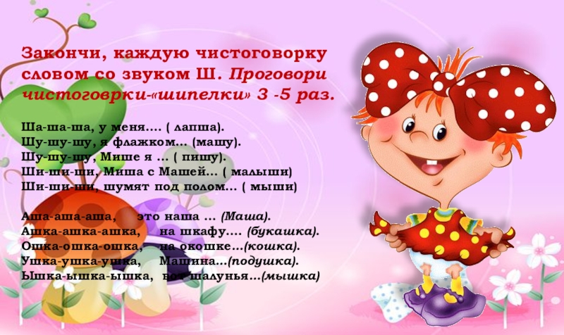 Игра «Закончи слова одинаково» (слог ШКА)