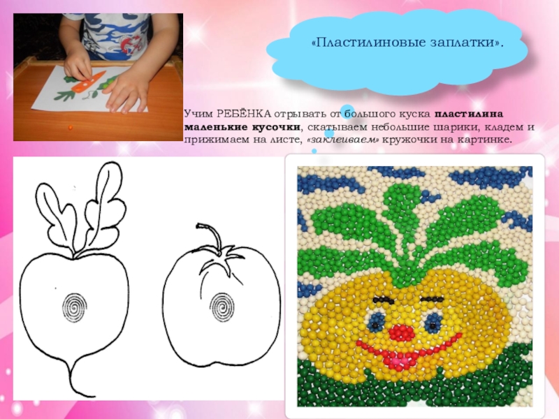 Совместная деятельность. Выложить фигуру репки с помощью шариков из пластилина.