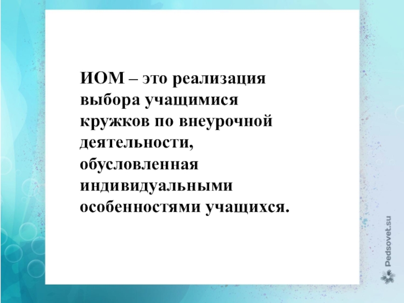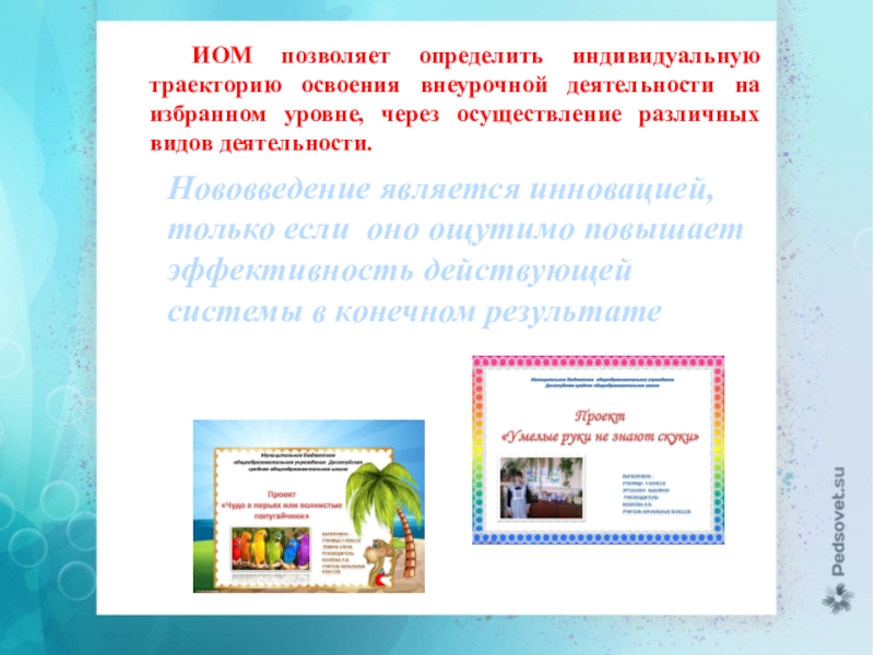 ИОМ позволяет определить индивидуальную траекторию освоения внеурочной деятельности на избранном уровне, через осуществление различных видов деятельности.
