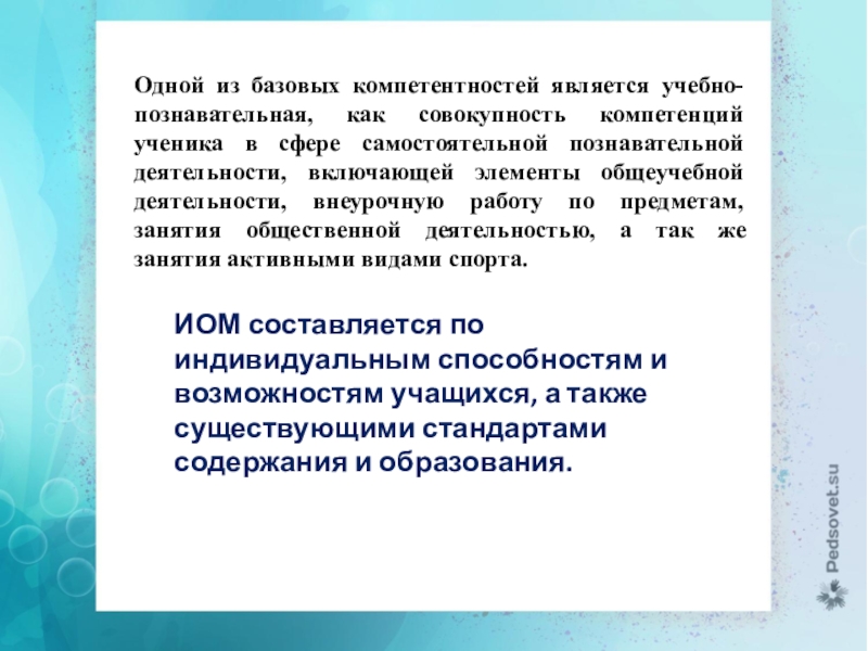 ИОМ составляется по индивидуальным способностям и возможностям учащихся, а также существующими стандартами содержания и образования.