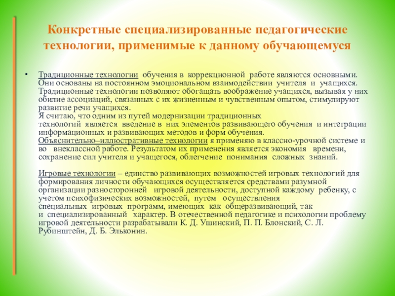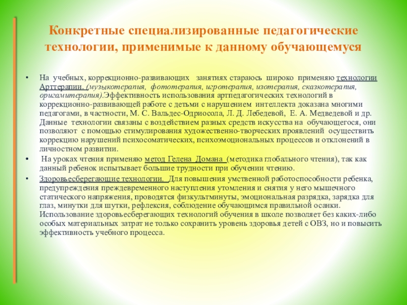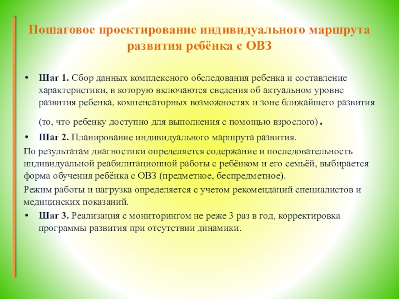 При организации учебного процесса следует исходить из возможностей учащегося, обучение должно быть основано на интересе, успехе, доверии. Важно, чтобы через выполнение доступных по темпу и характеру, личностно ориентированных заданий учащийся поверил в свои возможности, испытал чувство успеха, которое должно стать сильнейшим мотивом, вызывающим желание учиться.