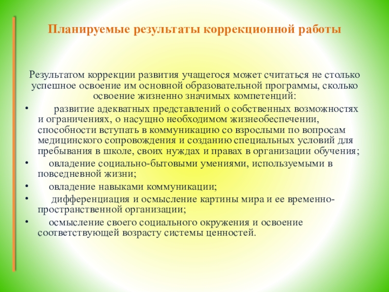 обеспечение коррекции недостатков в физическом и (или) психическом развитии детей с ограниченными возможностями здоровья и оказание помощи в освоении основных образовательных программ;