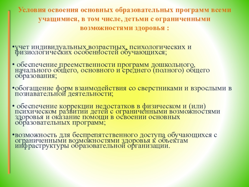 возможность для беспрепятственного доступа обучающихся с ограниченными возможностями здоровья к объектам инфраструктуры образовательной организации.