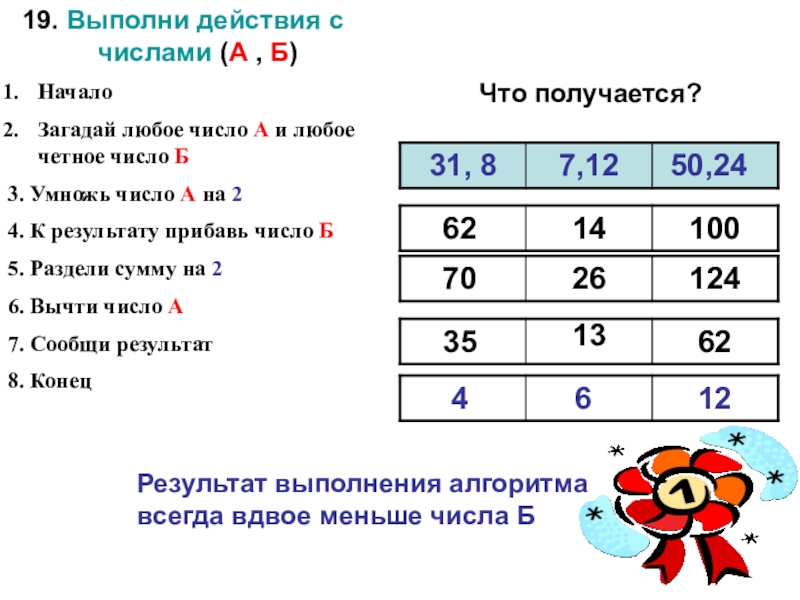 Результат выполнения алгоритма всегда вдвое меньше числа Б