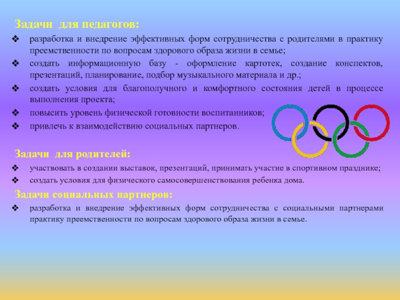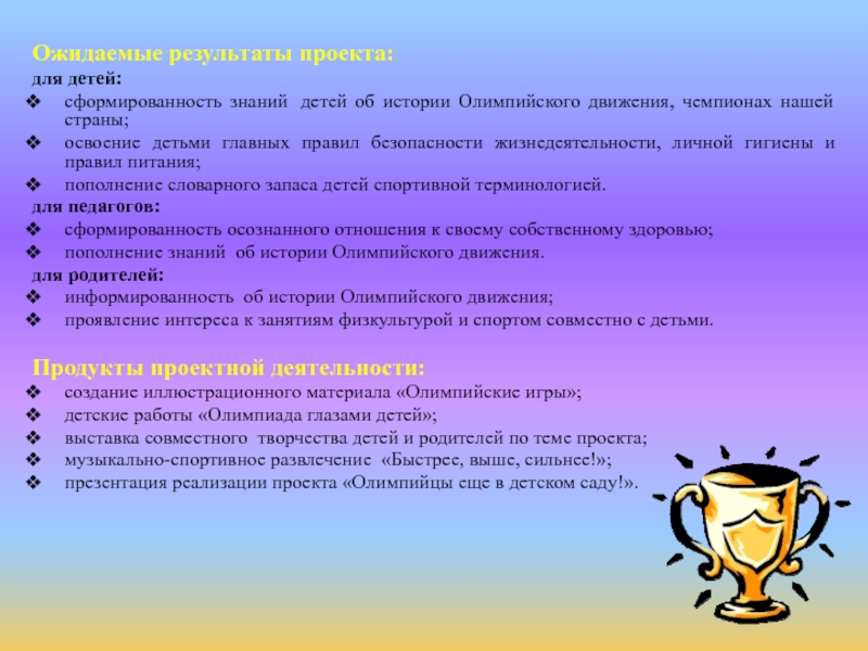 презентация реализации проекта «Олимпийцы еще в детском саду!».