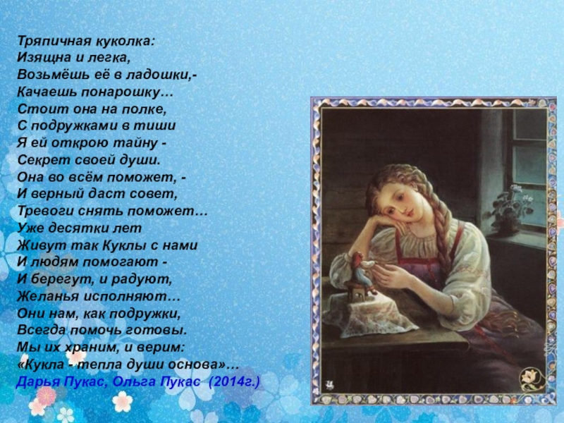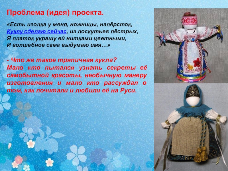 Цель моего проекта - познакомиться с «историей» русской народной куклы.