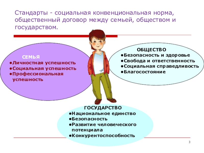 Слайд 3Стандарты - социальная конвенциональная норма, общественный договор между семьей, обществом и
