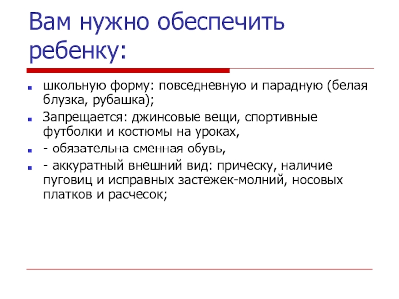 школьную форму: повседневную и парадную (белая блузка, рубашка);