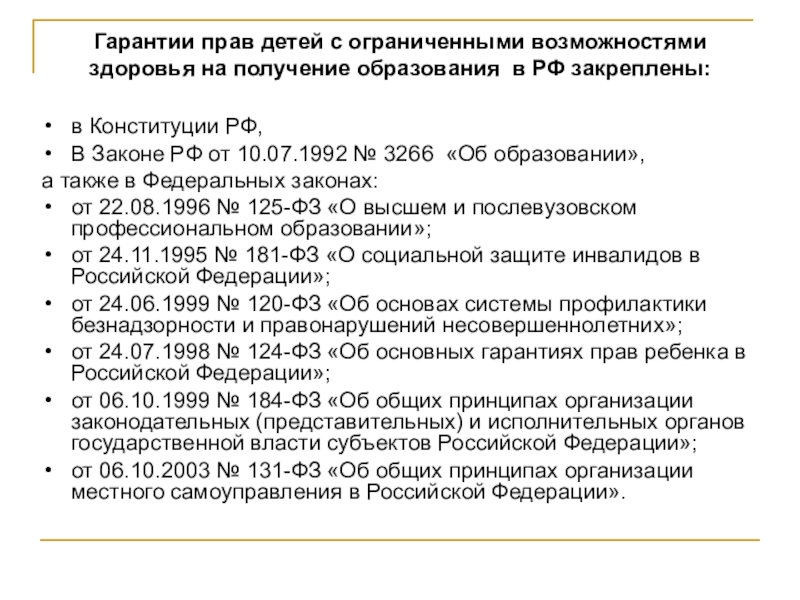 от 24.11.1995 № 181-ФЗ «О социальной защите инвалидов в Российской Федерации»;