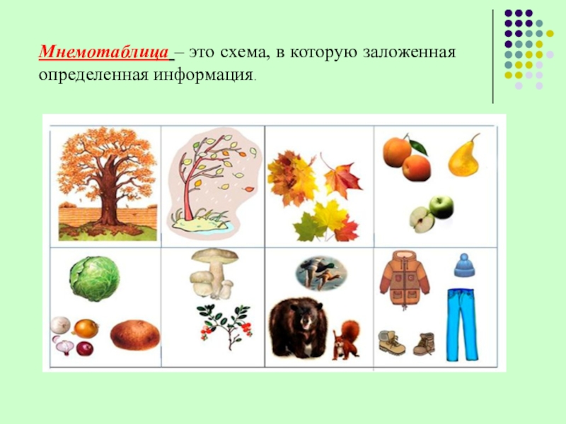 Слайд 6Мнемотаблица – это схема, в которую заложенная определенная информация.