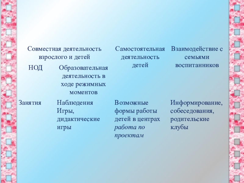 деятельности детей.