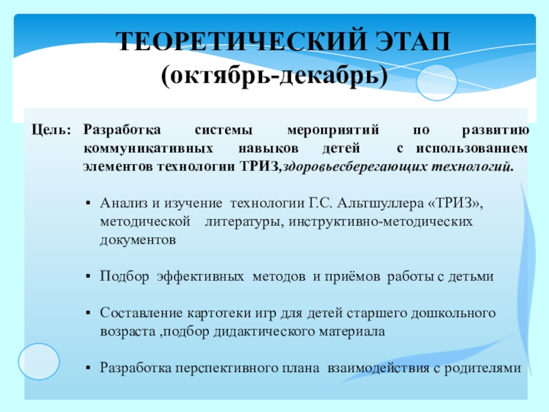 Повысится родительская компетентность в вопросе развития коммуникативных навыков детей через использование технологии ТРИЗ,здоровьесберегающих технологий.