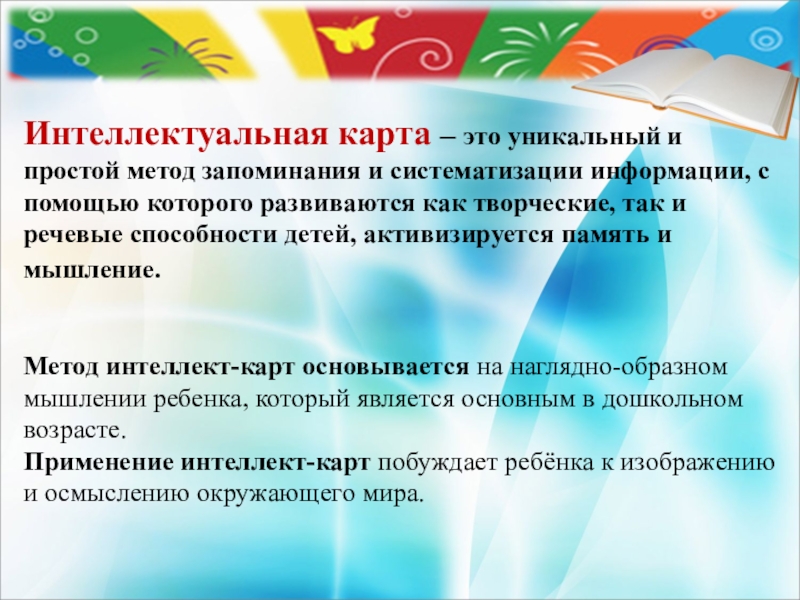 Метод интеллект-карт основывается на наглядно-образном мышлении ребенка, который является основным в дошкольном возрасте.