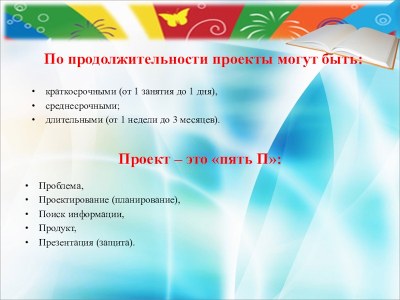 Под проектом понимается самостоятельная и коллективная творческая завершённая работа, имеющая социально значимый результат. В основе проекта лежит проблема, для её решения необходим исследовательский поиск в различных направлениях, результаты которого обобщаются и объединяются в одно целое.