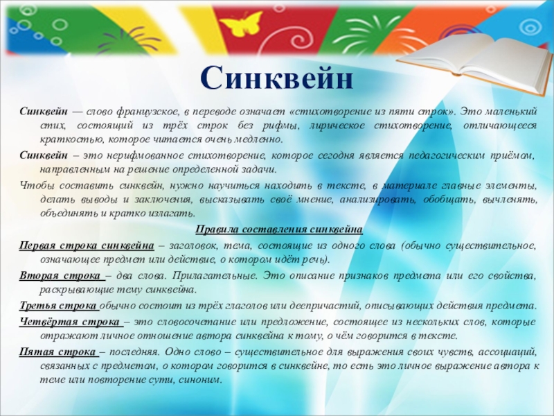 Синквейн — слово французское, в переводе означает «стихотворение из пяти
