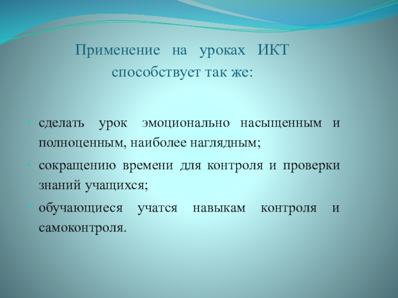 Слайд 4Применение на уроках ИКТ