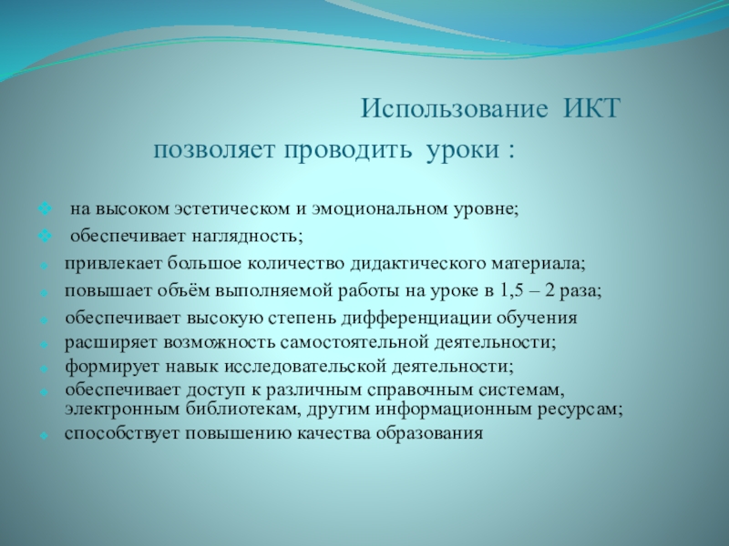 Использование ИКТ позволяет проводить уроки :