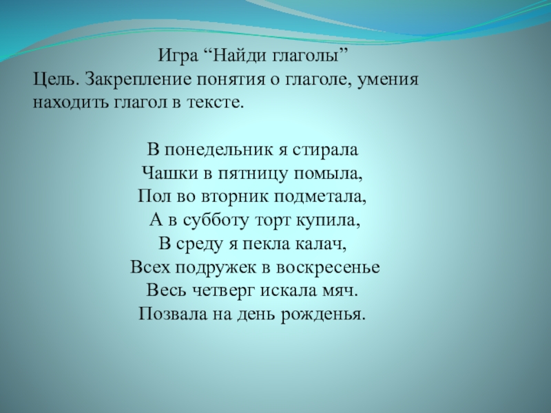 Игра “Найди глаголы”