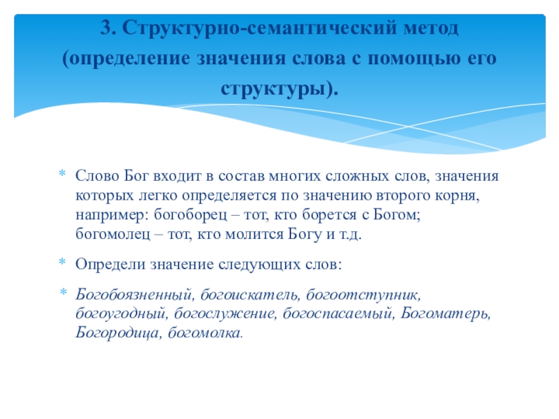 3. Структурно-семантический метод (определение значения слова с помощью его структуры).